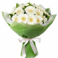 Букет «Белая ромашка» состоит из гербер белого оттенка, эти цветы очень напоминают ромашку, но гораздо больше и красивее. Герберы – цветы передающие скромность, изящность, простоту и уважение. Букет идеален для подарка другу или коллеге в честь праздника, например, свадьбы или юбилея. Композиция располагает к себе своим утонченным видом и приятным ароматом.